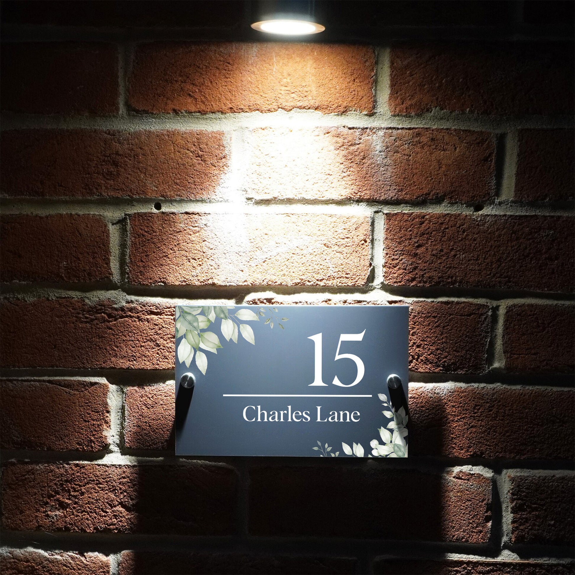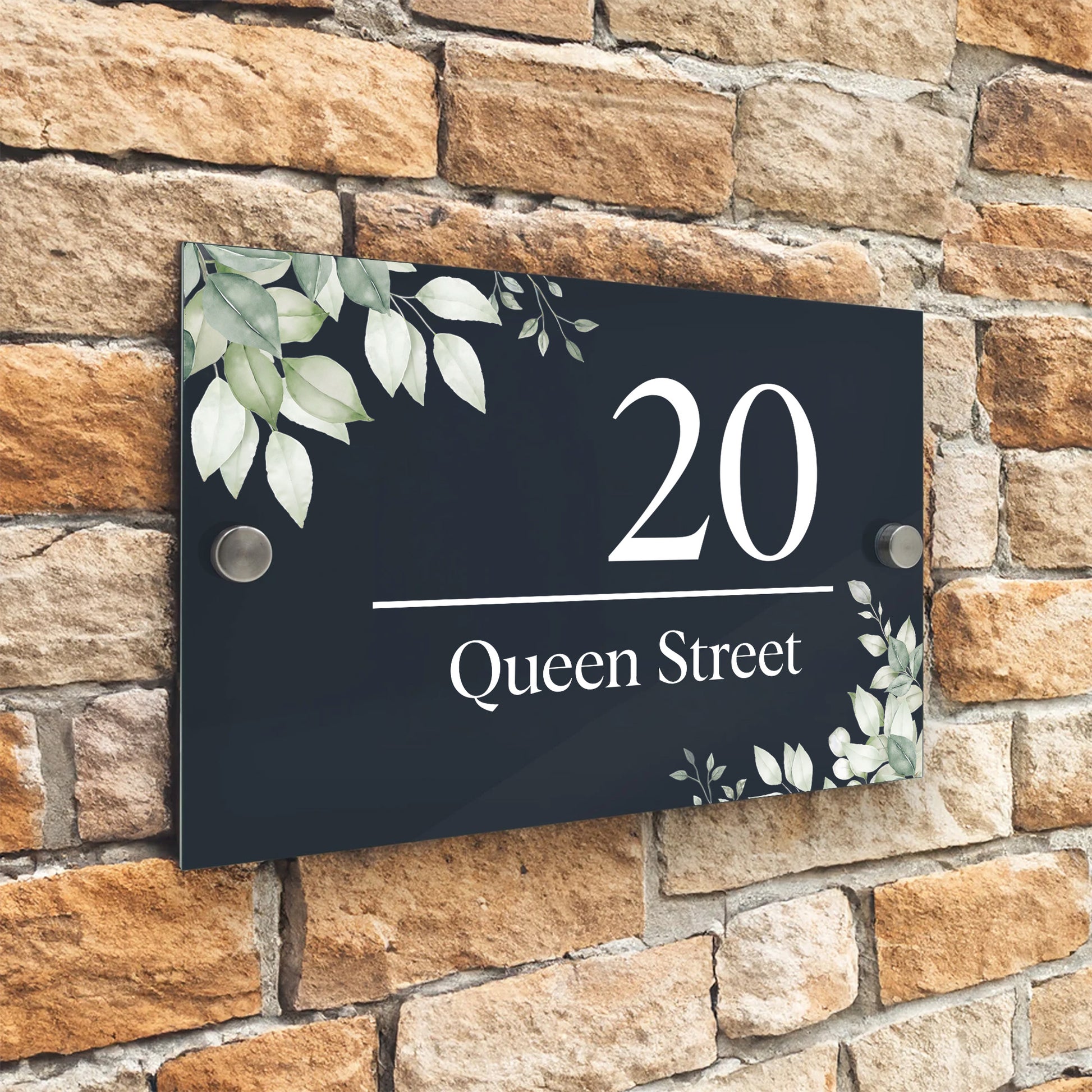 Traga um visual fresco e moderno à sua casa com a Placa de Número de Porta com Design Folha Verde. Fabricada em acrílico de alta qualidade e impressa com tecnologia UV, esta placa oferece clareza duradoura e detalhes vibrantes. O subtil design de folha verde adiciona um toque natural, enquanto o seu número de casa e nome da rua personalizados garantem que a sua morada seja elegante e fácil de ler.