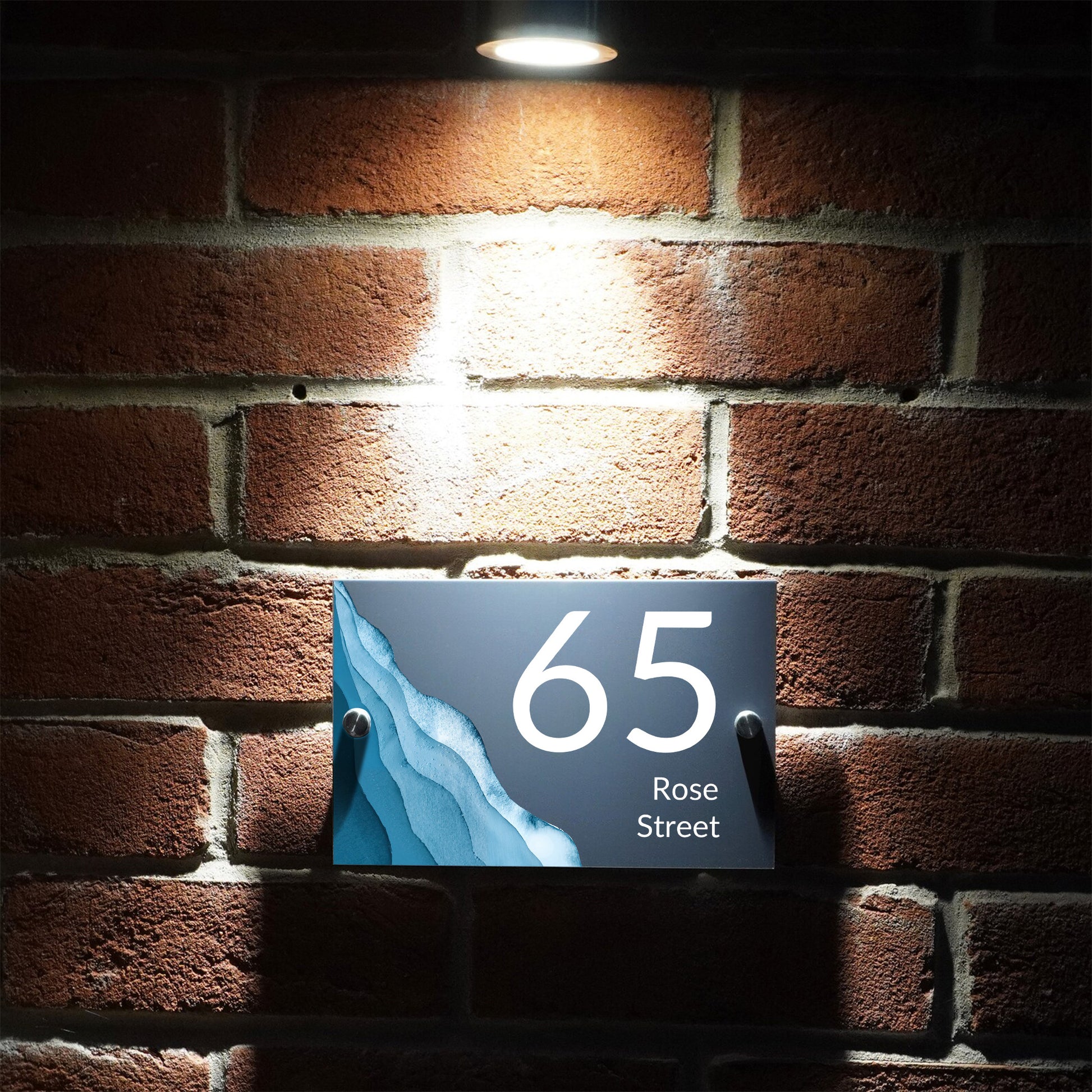 Placas Personalizadas Número Porta Casa Antracite Moderno Ondas Azuis Design Mar