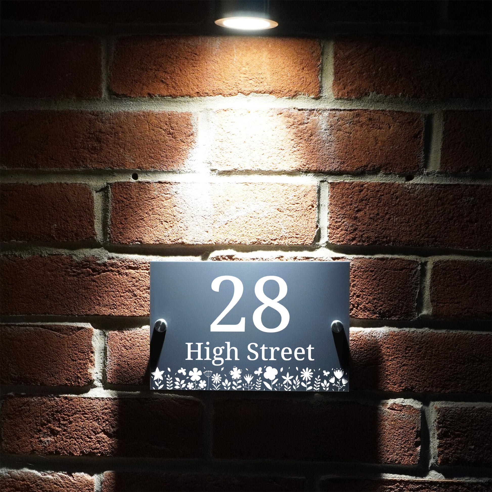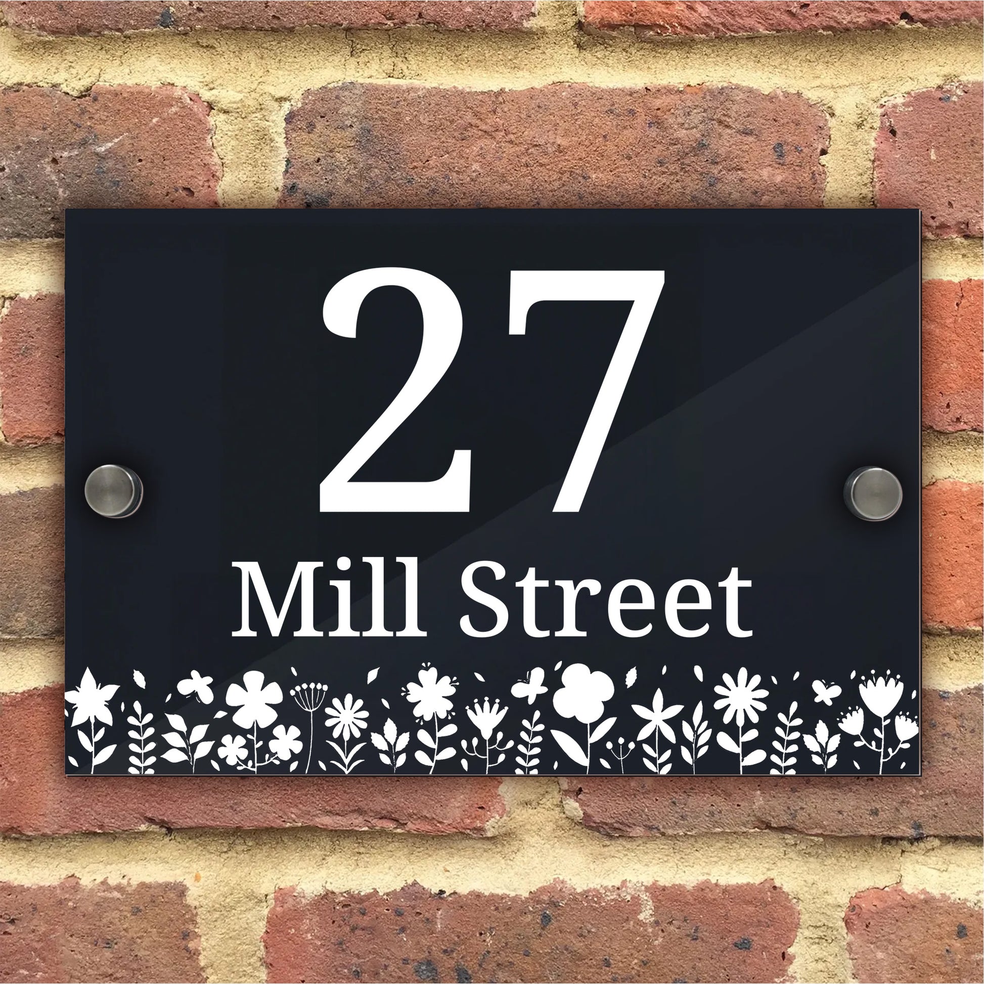 Realce o exterior da sua casa com a elegante Placa com Número de Porta e Borda Floral Inferior. Fabricada em acrílico premium e equipada com suportes em aço inoxidável, esta placa combina durabilidade moderna com beleza decorativa. A borda floral impressa com UV na parte inferior traz um toque elegante e vibrante, enquanto o seu número de porta e nome da rua personalizados garantem que a sua morada esteja sempre clara e fácil de ler.