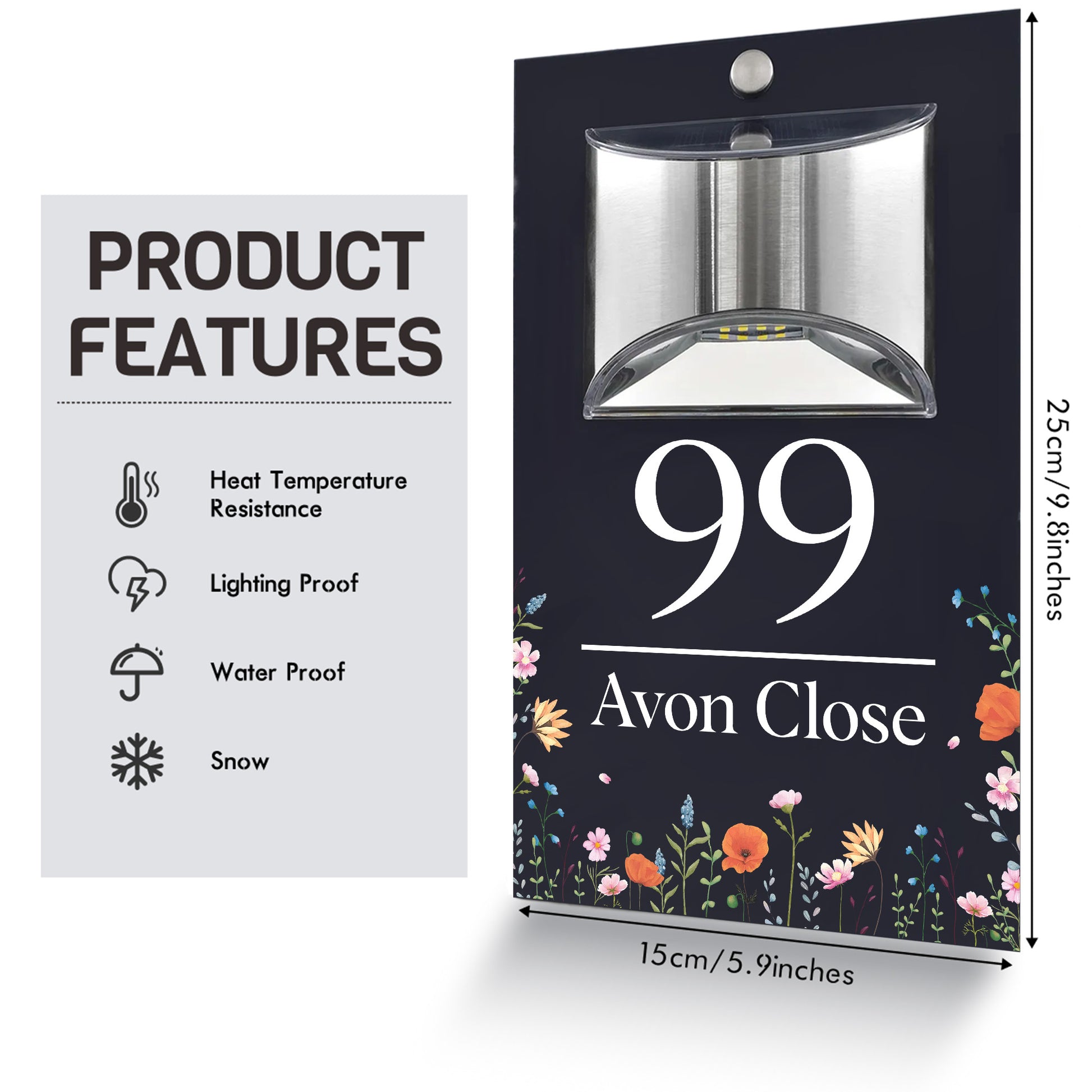 Sinais Personalizados Iluminados a Energia Solar Número de Casa Moderno Antracite Campo de Flores Selvagens