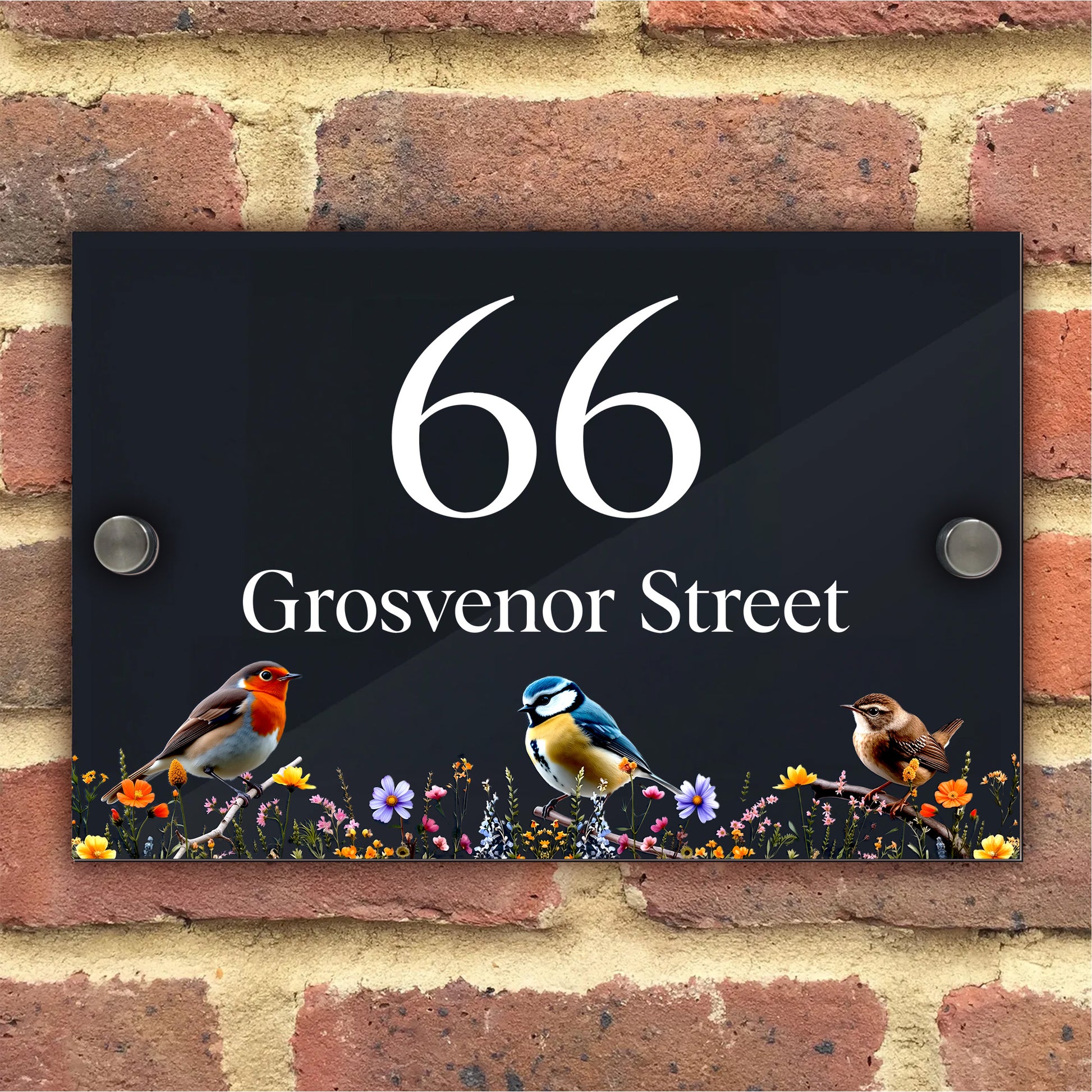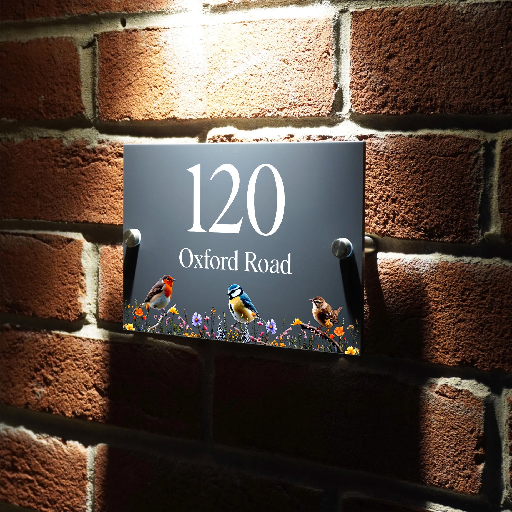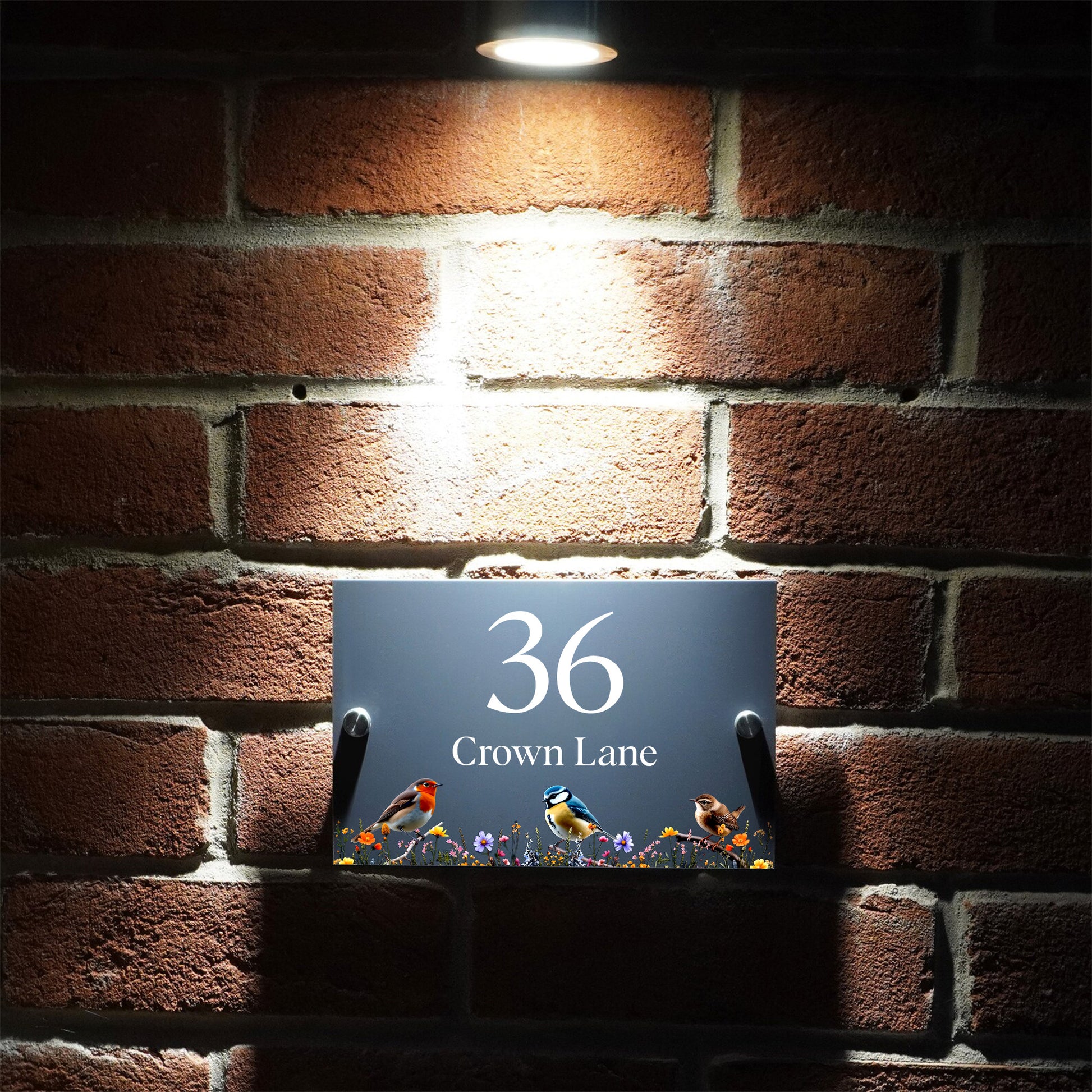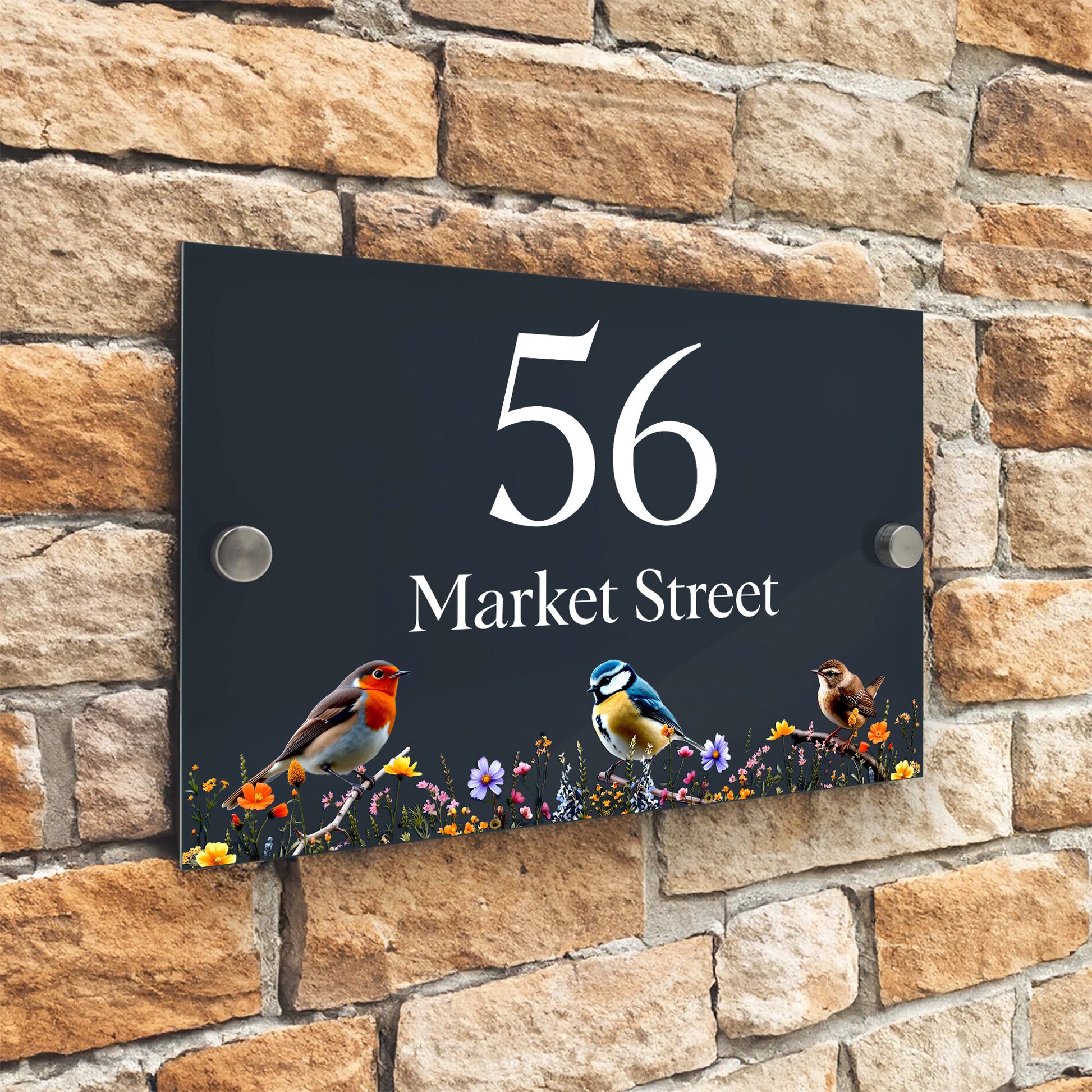 Aves de Jardim && Flores Silvestres Placa de Morada em Ardósia Natural – Placa Personalizada com Número de Morada